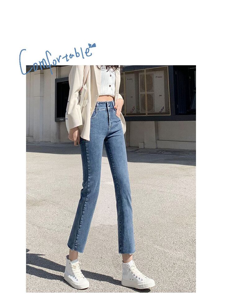 ストレートジーンズレディースパンツサマーシンセクション2021ニューハイウエストスリミング香港フレーバーシックルーズ9点たばこパイプ ハイウェスト 夏物 TM2-5 TM2-544440031642