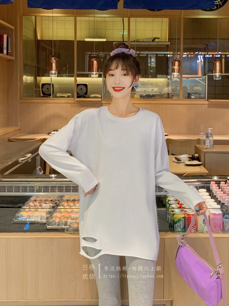 白い長袖Tシャツの女性のインタイドニューエイジ-わずかに脂肪の少ないルーズコットントップ春と秋のオールマッチインナーボトミングシャツ ロング ホワイト スプリング 春物 オータム 秋物 TB2-16 TB2-1672027590602