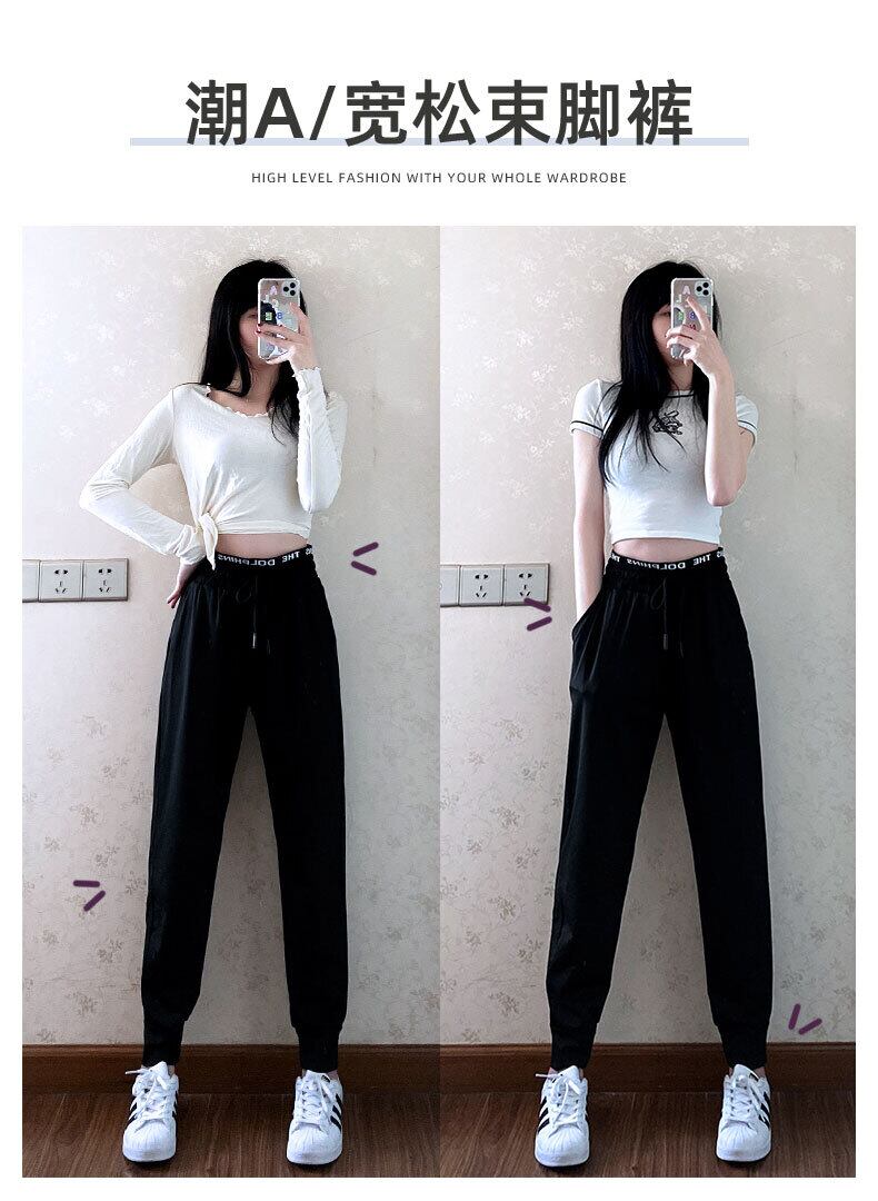 アイスシルク速乾性パンツ女性の2021年夏新しいゆったりとしたパンツカジュアルな黒の春と秋の薄い9ポイントスポーツパンツ ブラック スプリング 春物 サマー 夏物 オータム 秋物 TM2-5 TM2-585724085655