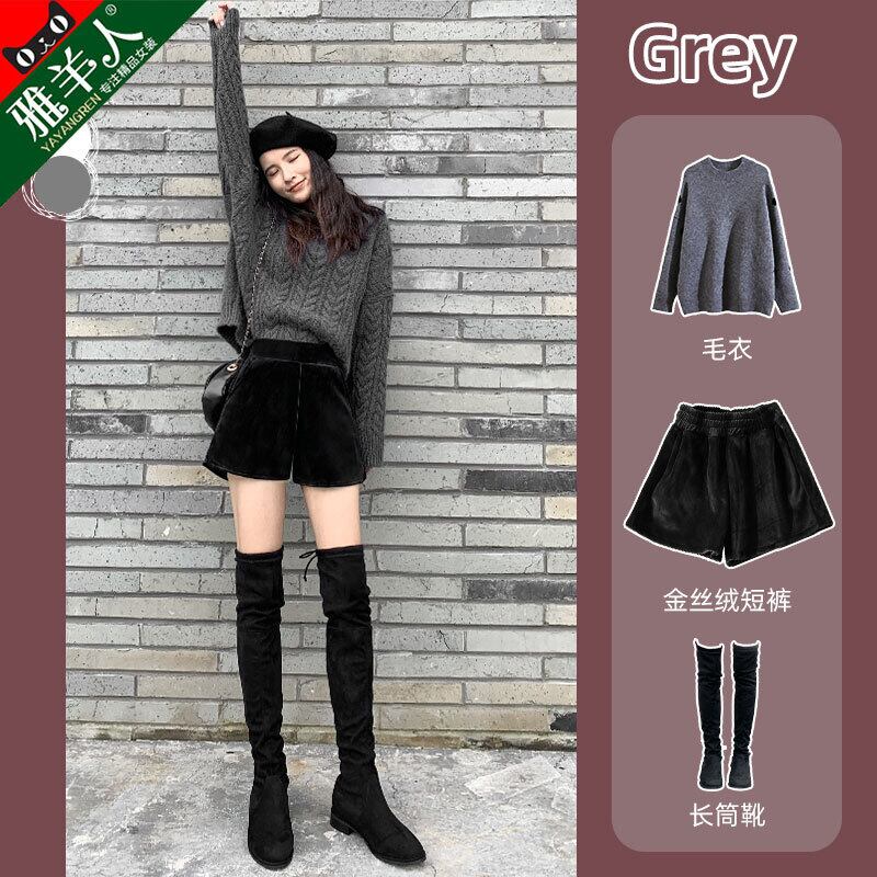 ブーツ付きのハイウエストウール冬のショーツ女性の2020年の新しい秋と冬のモデルは薄く、オールマッチのベースの冬のアウターウェアです 靴 シューズ オータム 秋物 ウィンター 冬物 ブルマー TM2-5 TM2-585914183634