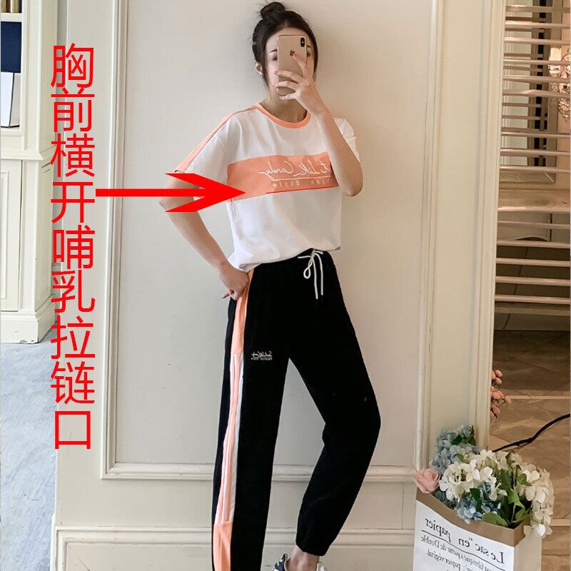 授乳服スーツは夏のファッションに出かけます半袖プラスサイズのブラウスTシャツパンツツーピース産後の授乳服 大きめサイズ サマー 夏物 TB2-14 TB2-1475640029902