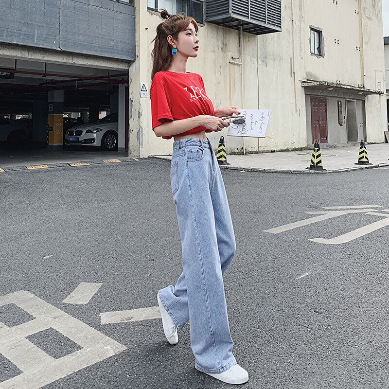 破れたデニムワイドレッグパンツレディースパンツ夏薄切片ハイウエストドレープストレートルーズパパは床を拭く細い伸縮性ウエストでした ハイウェスト エラスティック サマー 夏物 TM2-5 TM2-558810576699