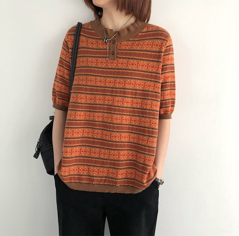 文学と芸術のレトロなミドルスリーブセーター女性の2021年春の新しいカジュアルなルーズで薄いヘッジ5ポイントスリーブトップ スプリング 春物 TB2-9 TB2-953120077295