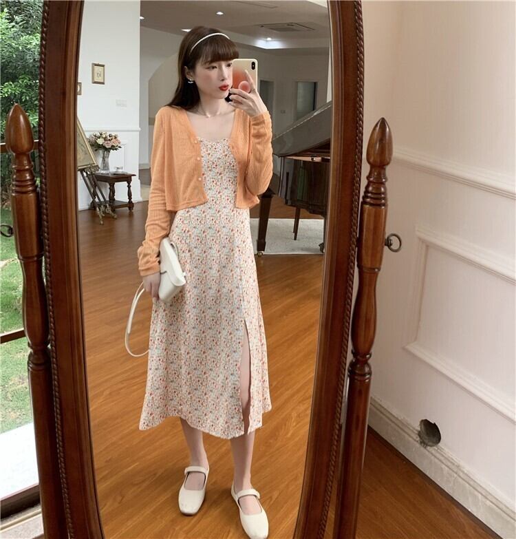 2021年春夏新作ミドル丈フローラルスリングワンピースレディース長袖ニットジャケットスーツ ロング スプリング 春物 サマー 夏物 花柄 TB2-6 TB2-654428409545