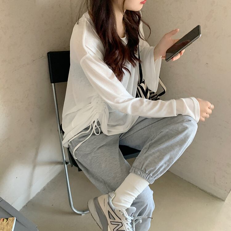夏の日焼け止めブラウス女性ルーズアウターネットレッドヒョナスタイルドローストリングパースペクティブシントップ長袖Tシャツ女性通気性 ロング サマー 夏物 TB2 TB259938234827