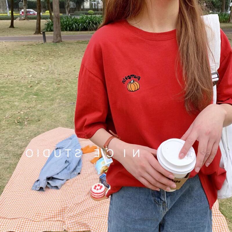 新しい女性のラウンドネック半袖ルーズで薄いボトミングシャツコットントップのレターオールマッチTシャツ女性2021バージョン Oネック TM2-3 TM2-367893444634