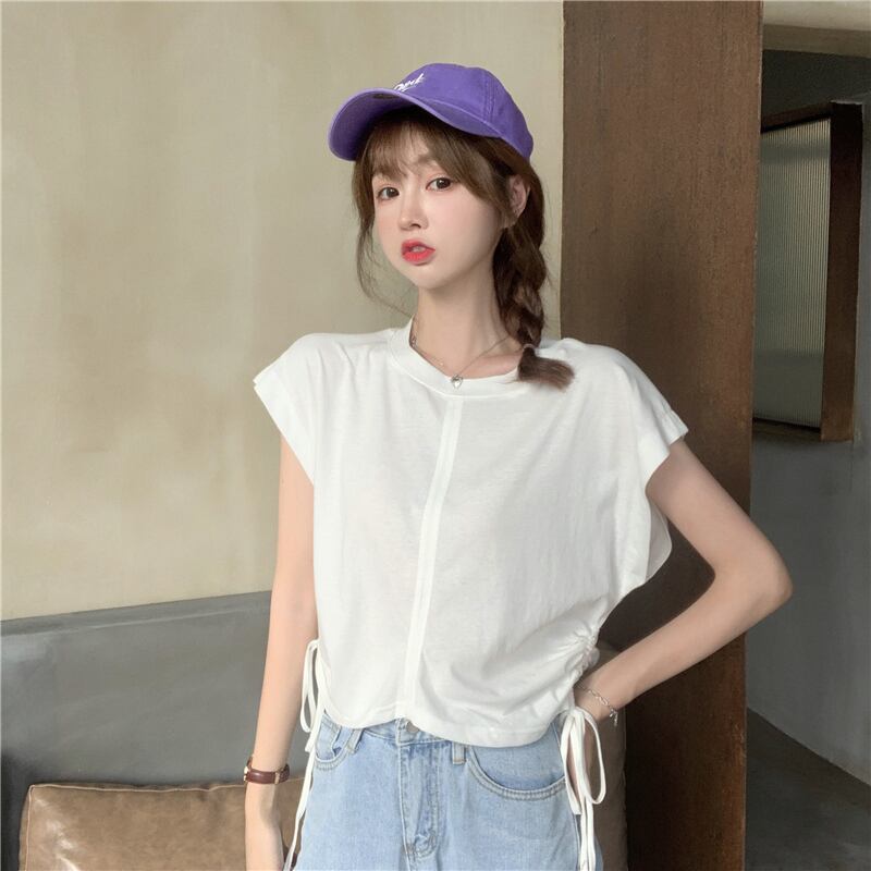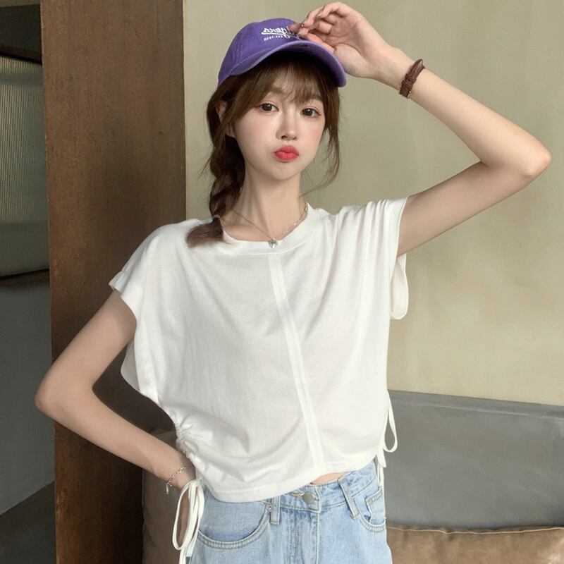 半袖Tシャツ女性インスティッド2021夏新バージョンルーズニッチデザインピュアカラー巾着ウエストトップ サマー 夏物 TM2-3 TM2-390996263319