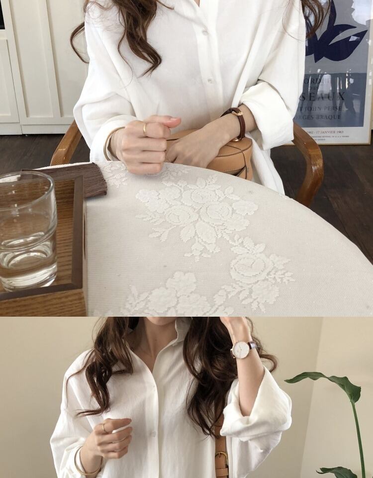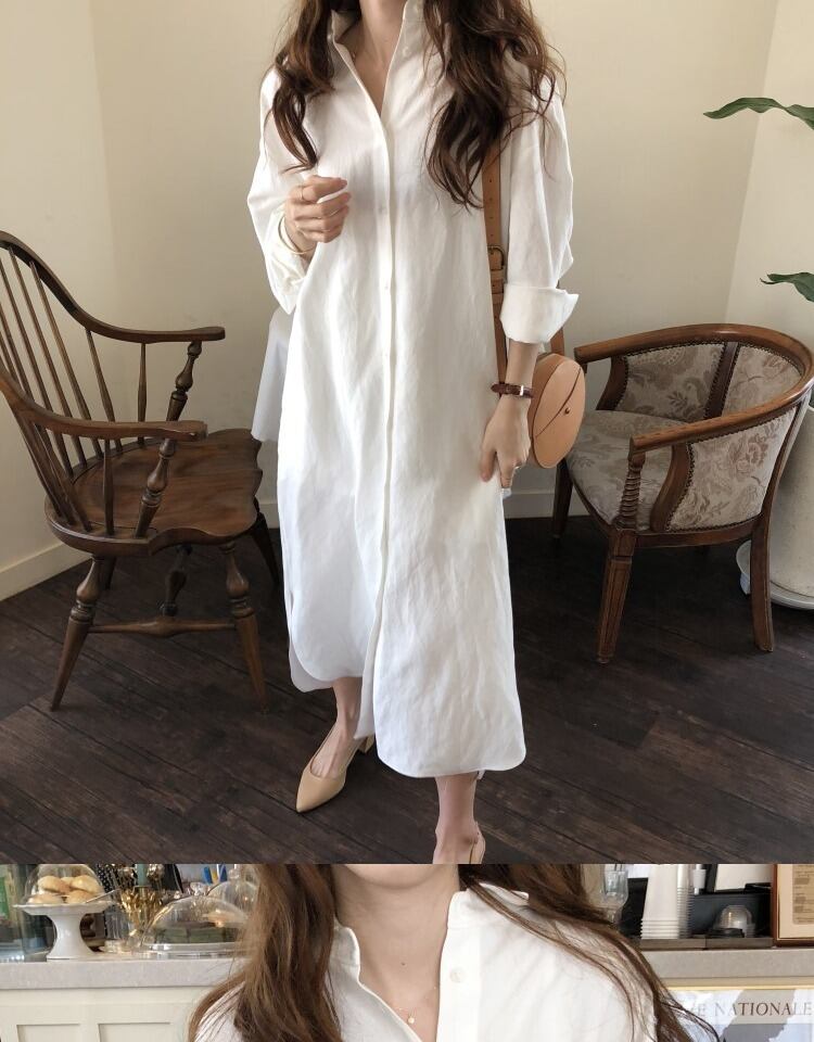 怠惰なスタイルのシンプルな綿とリネンの超ロングシャツの女性の膝の上無地のラペルホワイト長袖日焼け止めシャツ コットン ソリッドカラー TB2-3 TB2-379216255292