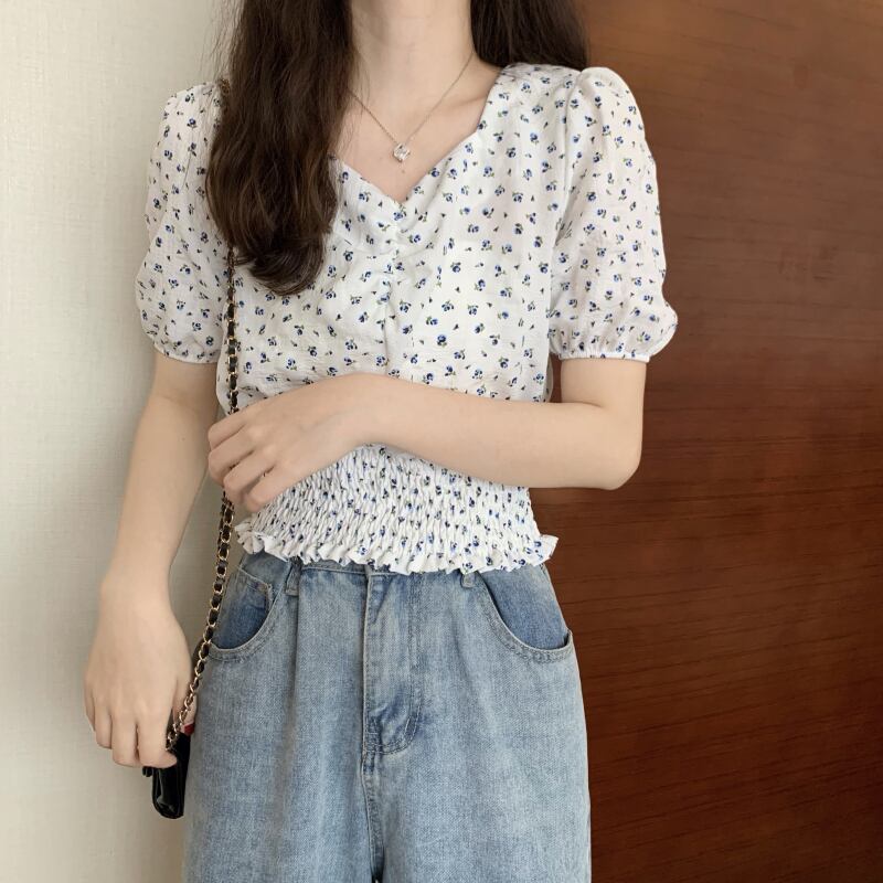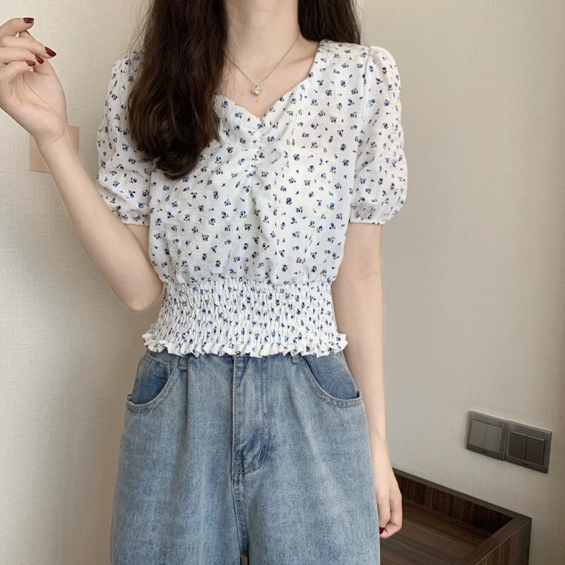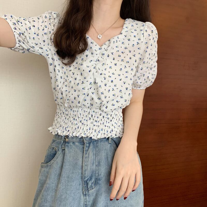 花柄半袖シャツレディース薄手のジャケット夏新作2021デザインセンスニッチシックショートウエストジャケット サマー 夏物 TB2 TB23476922755