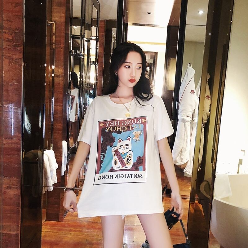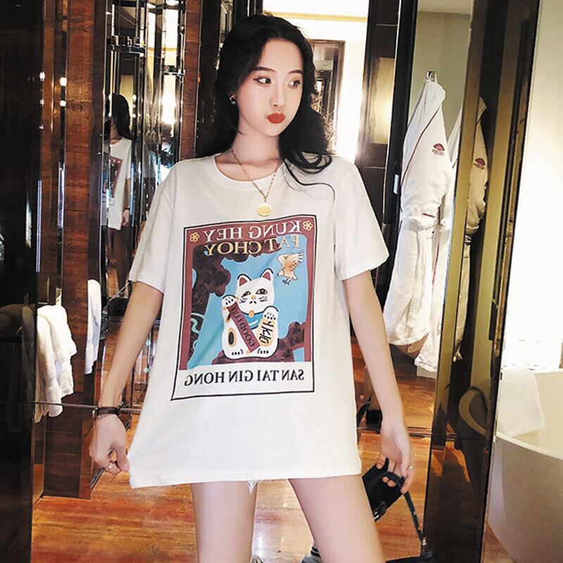 BFレイジースタイルウェアラージサイズルーズホワイト半袖シャツ招き猫漫画プリントTシャツ女性夏イントレンディ 大きめサイズ サマー 夏物 TM2-3 TM2-35560293612