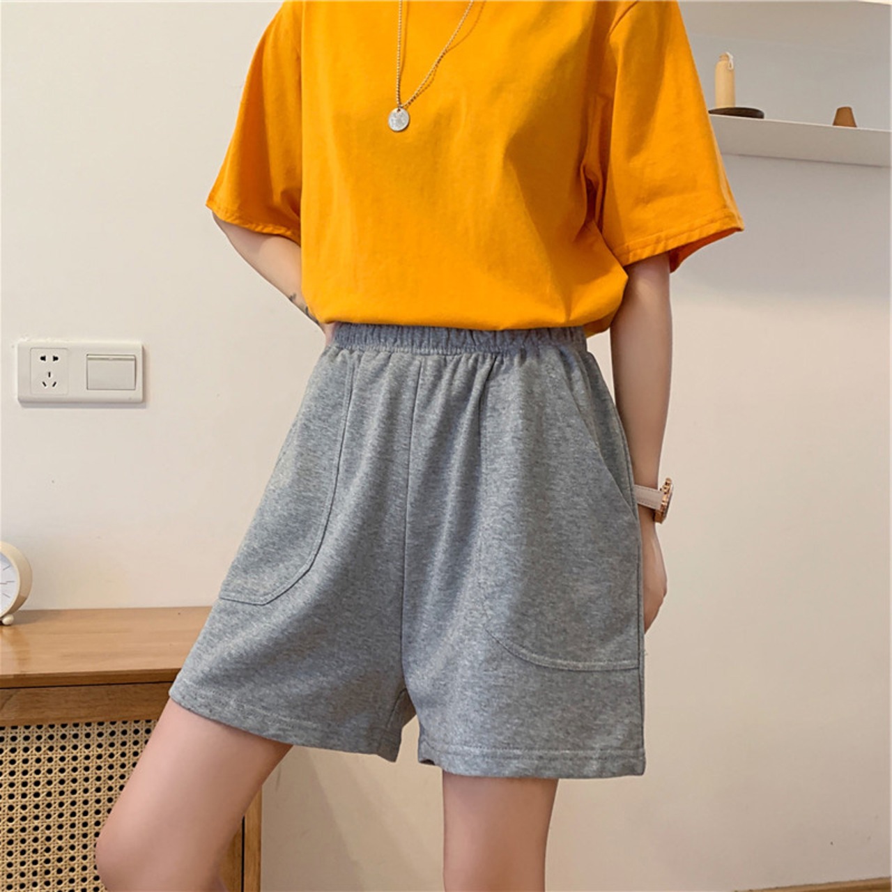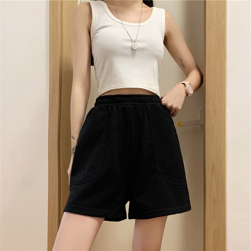 ピュアコットンブラックスポーツショーツレディースサマールーズ&シンオールマッチハイウエストカジュアルホームパジャマワイドレッグ5点パンツ 夏物 ブルマー TM2-3 TM2-352795005809