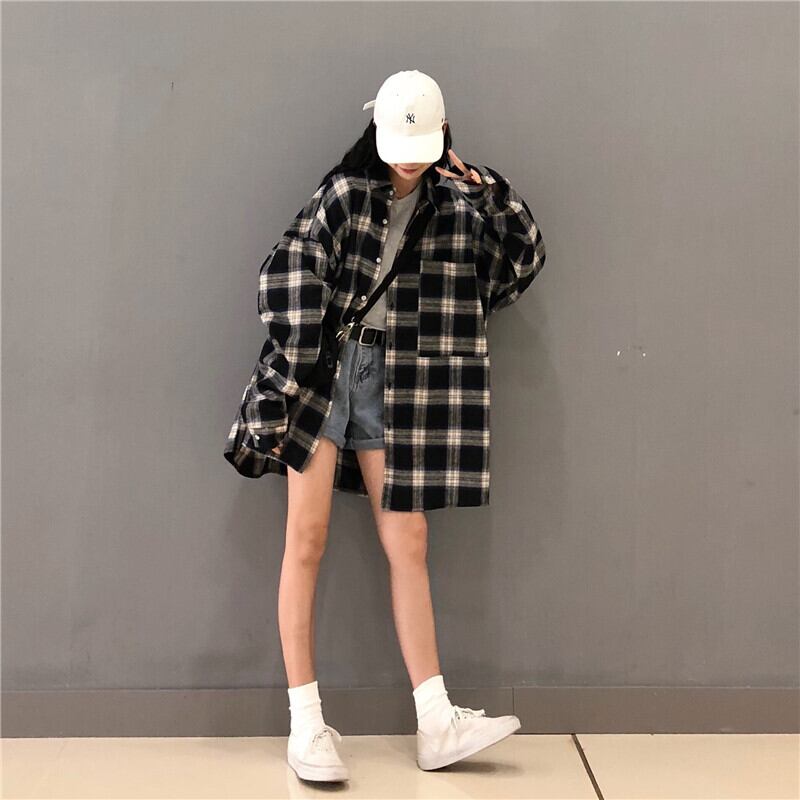 チェック柄シャツレディース新作2021年春バージョンルーズアウターオールマッチウエスタンスタイルレトロ香港スタイルシャツジャケット スプリング 春物 TB2 TB225041577914