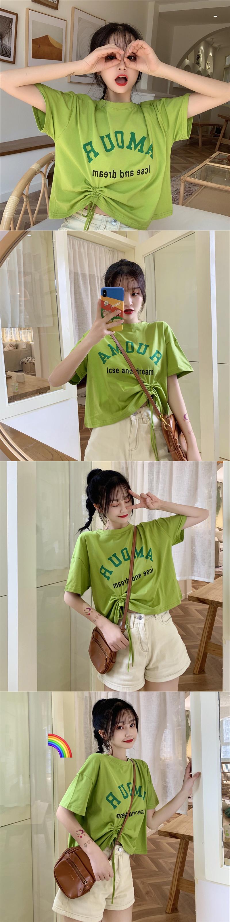 2021年純綿半袖Tシャツレディースサマーインタイドルーズスチューデントハイウエストニッチデザインおへそのセンス ハイウェスト コットン 夏物 ピュア TM2-3 TM2-339752873362