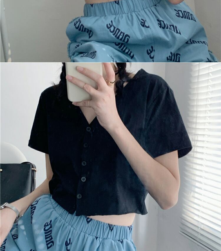 フランスのレトロなクロップドトップの女性の2021年夏の新しいデザインのニッチな純綿のVネックブラック半袖カーディガン コットン サマー 夏物 ピュア TM2-3 TM2-376332716565