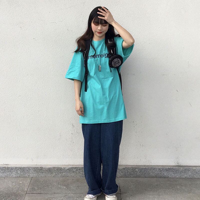 2021年夏の新しいバージョンのins香港スタイルのワイルドレイクブルーシャツ純綿の学生ルーズ半袖Tシャツ女性の潮 コットン サマー 夏物 ピュア TM2-3 TM2-375088333085