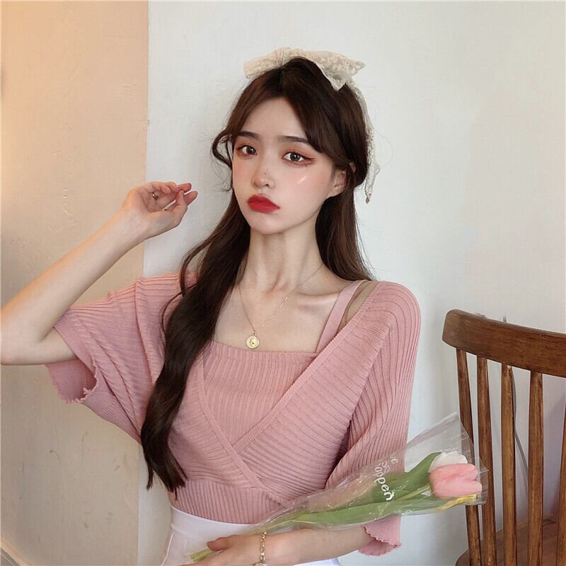 フェイクツーホワイトニット半袖レディースサマーデザインセンスニッチルーズ優しい甘くてスパイシーなショートTシャツ 大人ガーリー スウィート キュート カジュアル 夏物 TB2 TB243806495385
