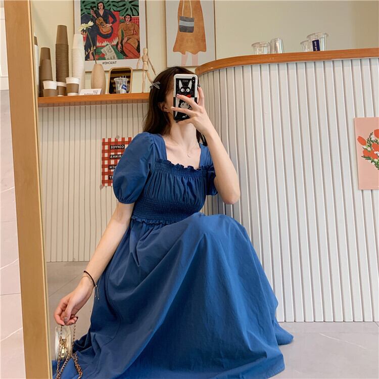 スクエアネックパフスリーブフレンチ初恋スウィートドレスヘップバーンスタイルレトロ優しい妖精夏は細くて長いスカートでした ロング 大人ガーリー キュート カジュアル サマー 夏物 スクウェア TB2 TB240588051327