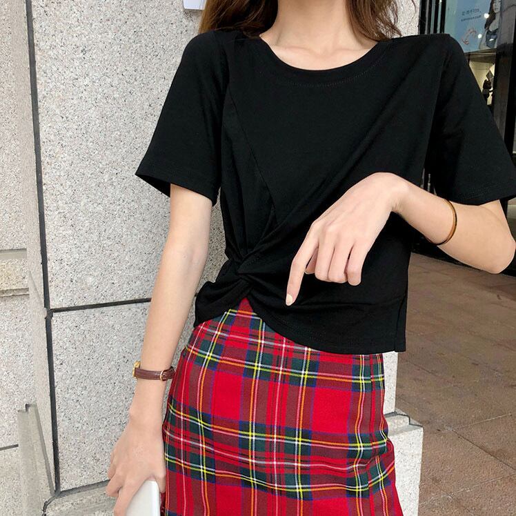 ショートTシャツレディース夏服ウルザンネットレッド純綿半袖ハイウエストおへそスリム学生トップス コットン サマー 夏物 ピュア TM2-3 TM2-37718469540