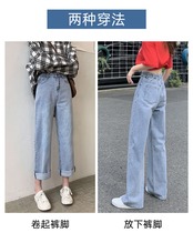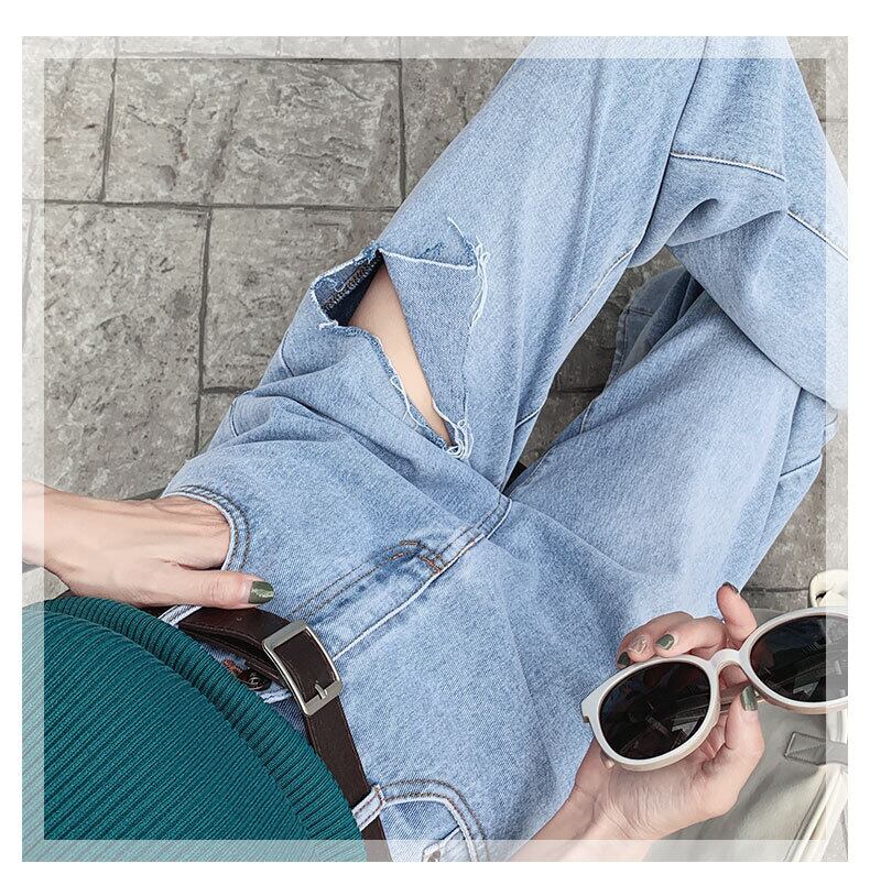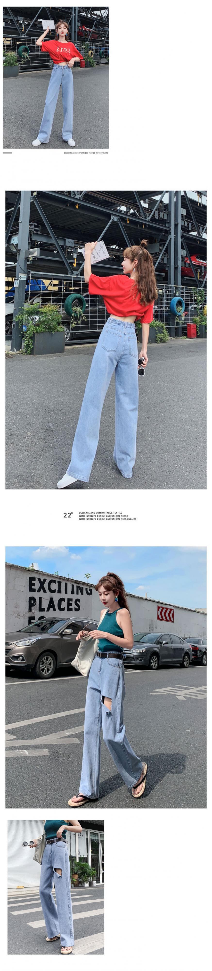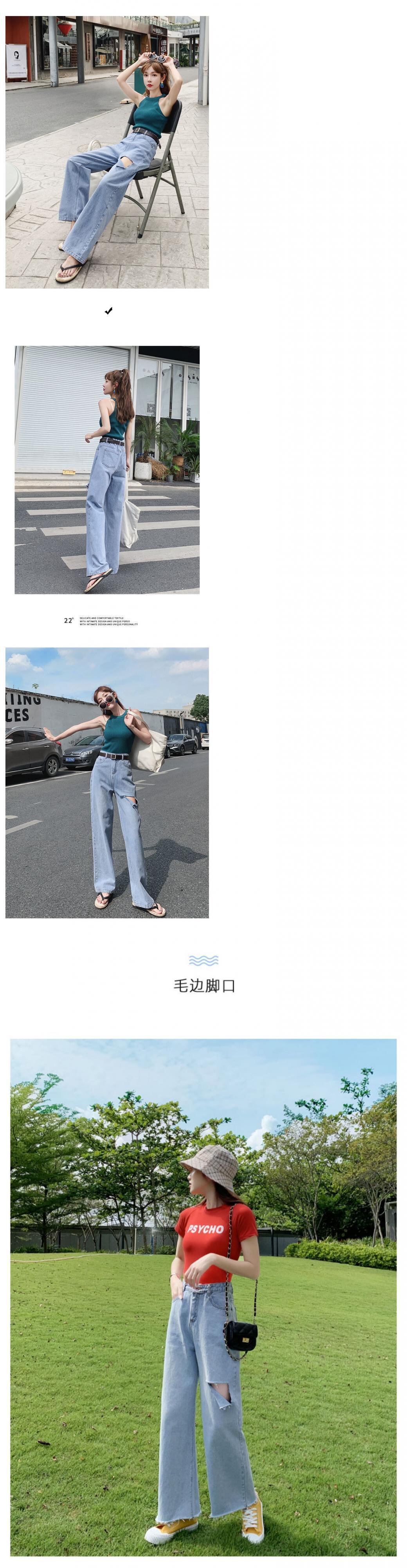 破れたデニムワイドレッグパンツレディースサマーハイウエストドレープローズインタイドサマーシンセクションストレートローエッジスアンヤパンツ ハイウェスト 夏物 TM2-5 TM2-583660031564