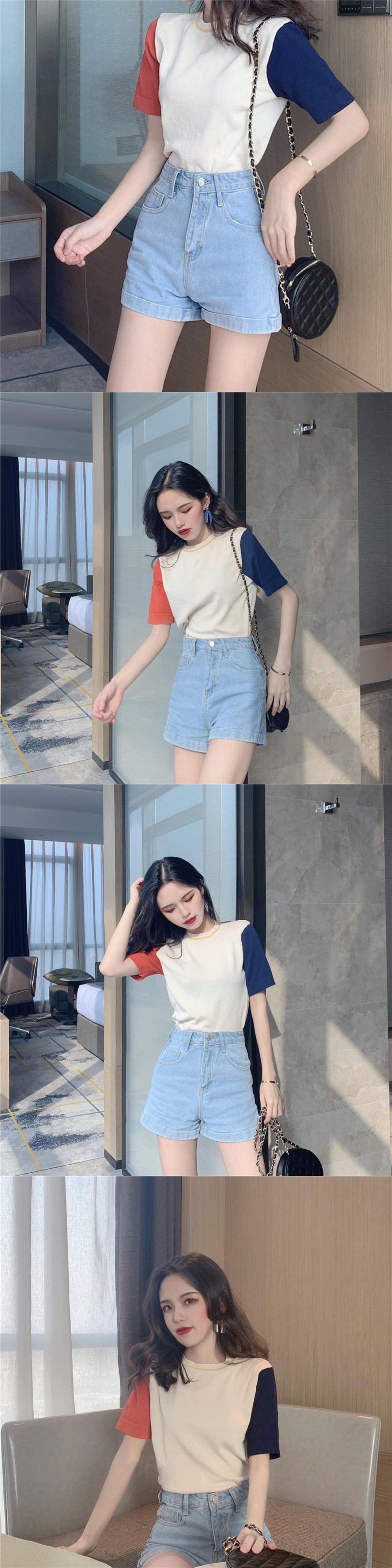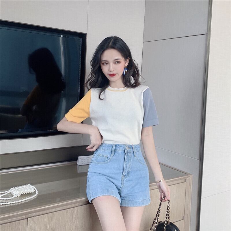 今年の黄色いTシャツは2021年夏にジーンズで人気があります。アイスシルクニットの女性用半袖薄手スタイルコントラスト サマー 夏物 TB2 TB255078785876
