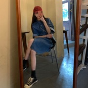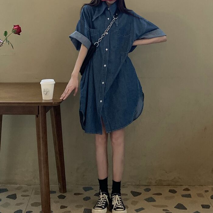 ポロカラーデニムワンピース女性2021年夏新レトロデザインセンスニッチ半袖ルーズシャツスカートトレンド サマー 夏物 TB2 TB265471122066