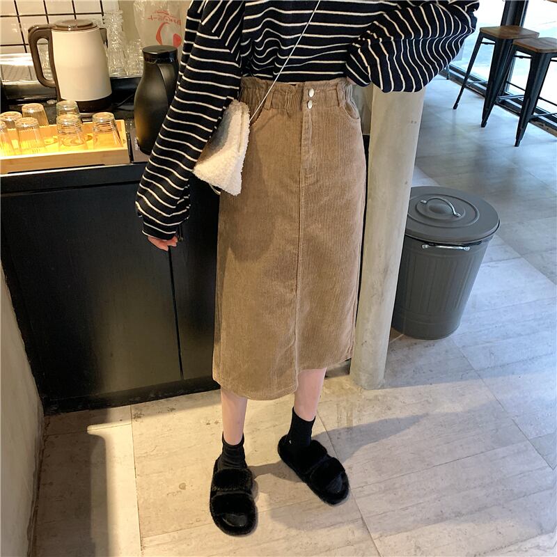 145ショートショート150バージョンは膝スカートの女性の春の上に薄いハイウエストコーデュロイバックスプリットミドル丈スカートでした ハイウェスト スプリング 春物 TB2 TB244911341632