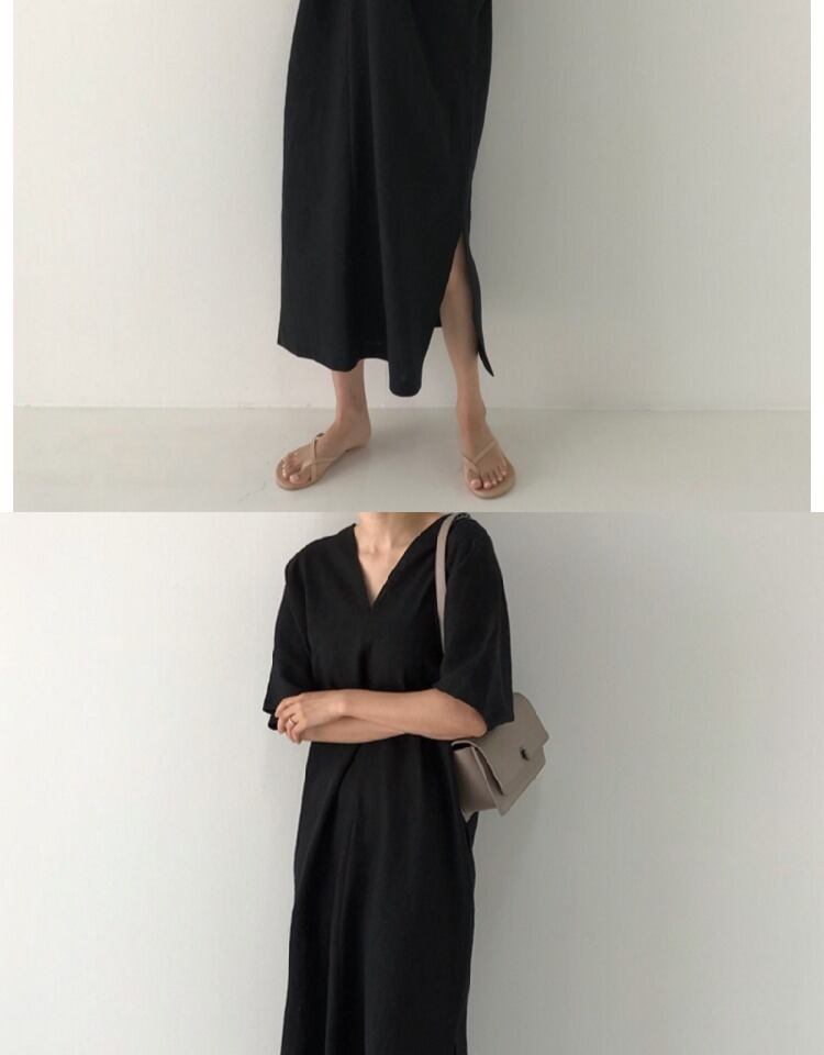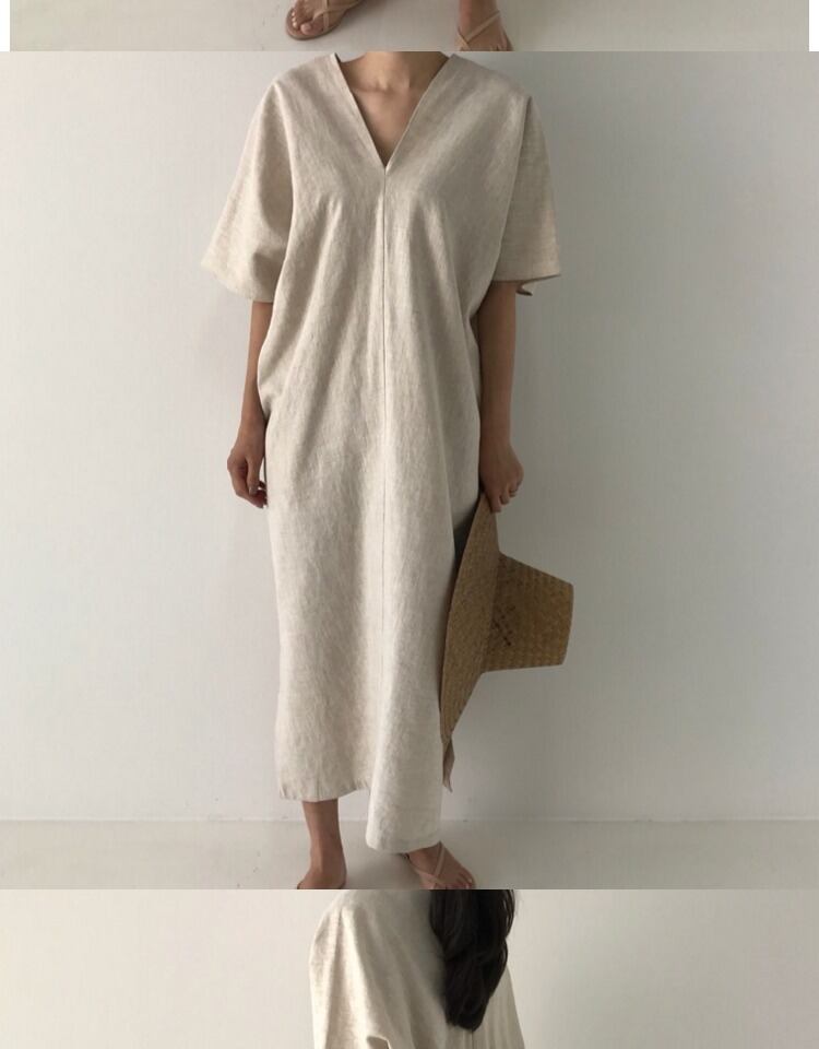 2021年夏のインミニマリストレトロロングルーズルーズレイジースタイルVネックロング半袖ドレス女性 サマー 夏物 TB2-3 TB2-344205218638