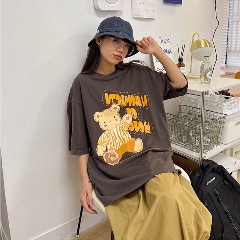 ins香港スタイル半袖クマTシャツ女性夏バージョンルーズミドル丈大型ボディ学生半袖トップス 大きめサイズ サマー 夏物 TM2-3 TM2-314068719447