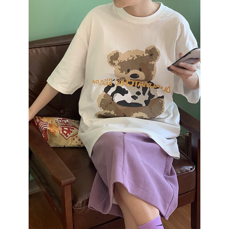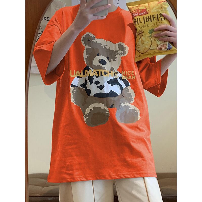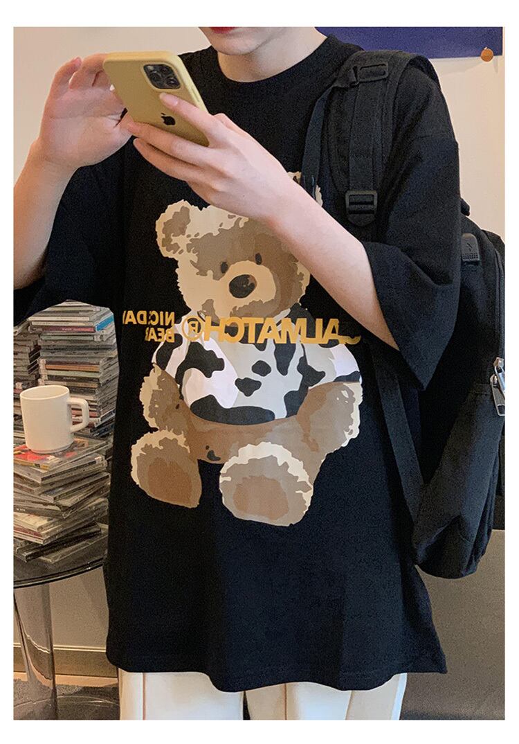 2021年夏新バージョンのベアプリントコットン半袖Tシャツメンズ&レディースインルーズワイルド原宿トップス かわいい サマー 夏物 TM2-3 TM2-366583514355