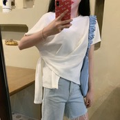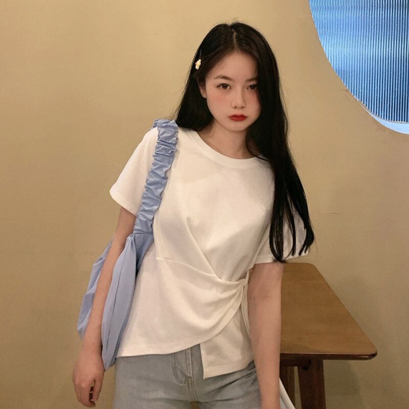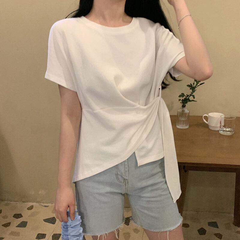 ピュアカラーTシャツレディース半袖インタイドバージョンのルーズネクタイイレギュラーコットントップデザインセンス女性ニッチ夏 サマー 夏物 TM2-3 TM2-312146707055