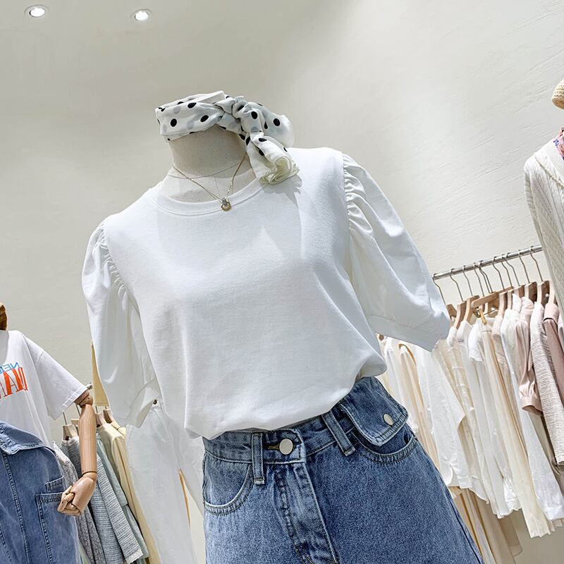 2021年の新しいネットセレブリティホワイト半袖Tシャツ女性夏ルーズ学生バブルスリーブカーディガントップタイドイン香港スタイル サマー 夏物 TM2-3 TM2-383065904591