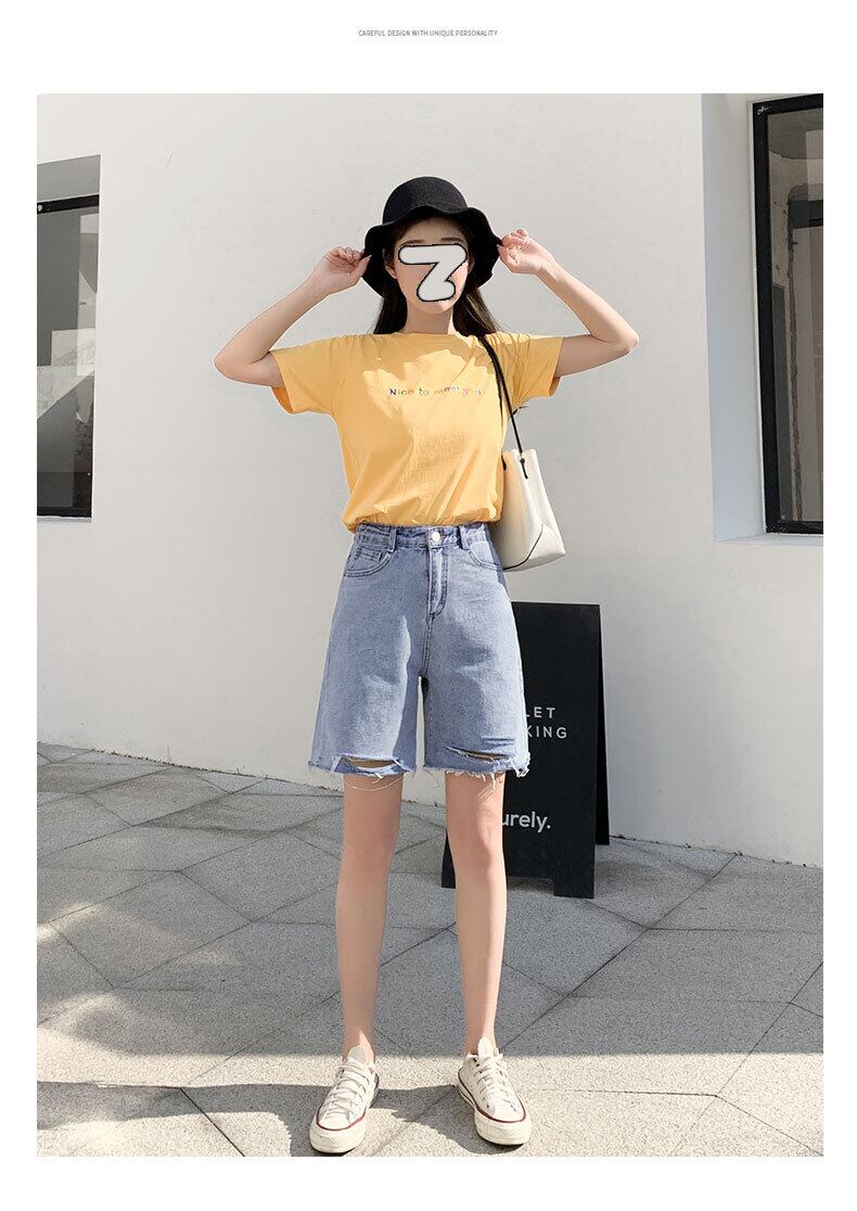縫い目のあるデニムショーツ女性の夏の薄いセクション2020新しいハイウエストルーズペアーシェイプのボディウェア5ポイントブリーチ ハイウェスト サマー 夏物 ブルマー TM2-5 TM2-591150339437