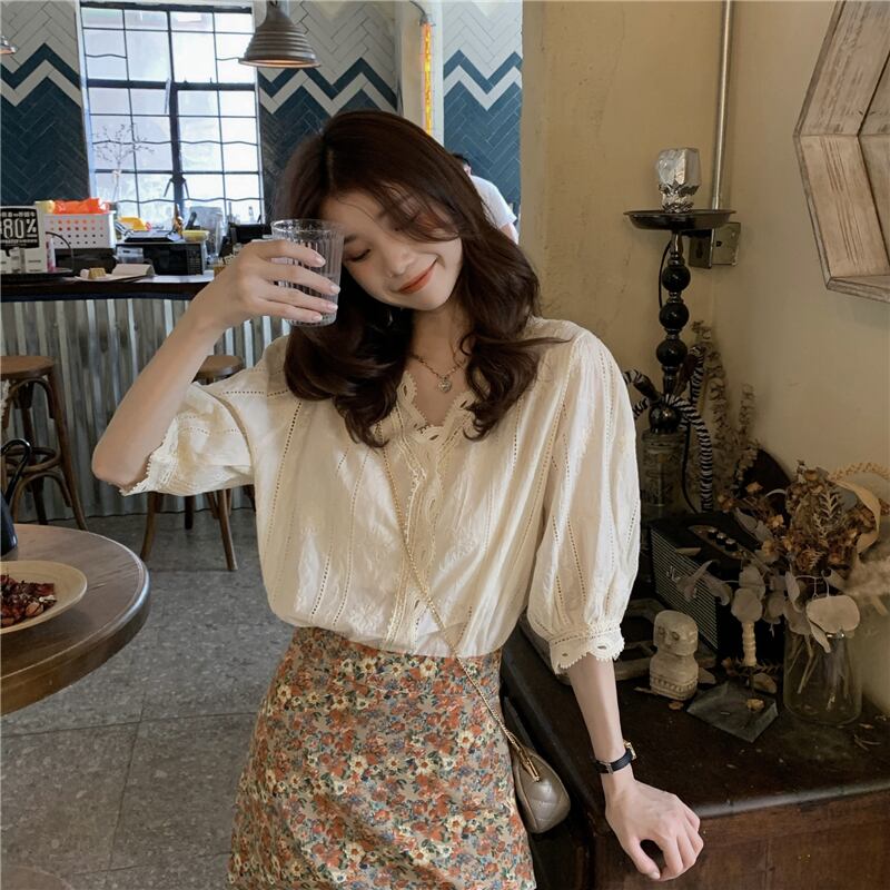 レース半袖シャツ女性デザインセンスニッチ夏2021新しい優しいスタイルフレンチパフスリーブトップ サマー 夏物 TB2 TB268468998956