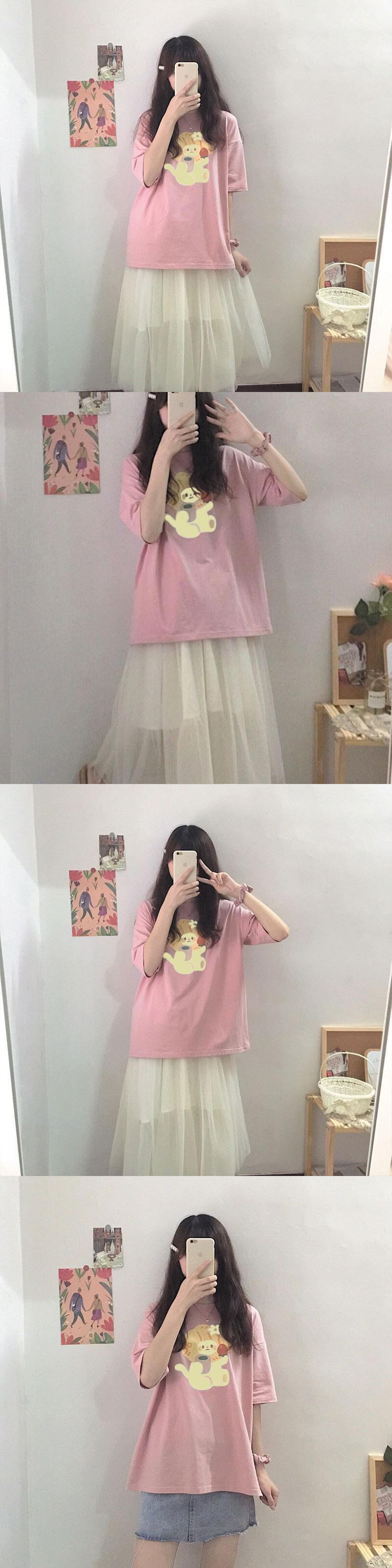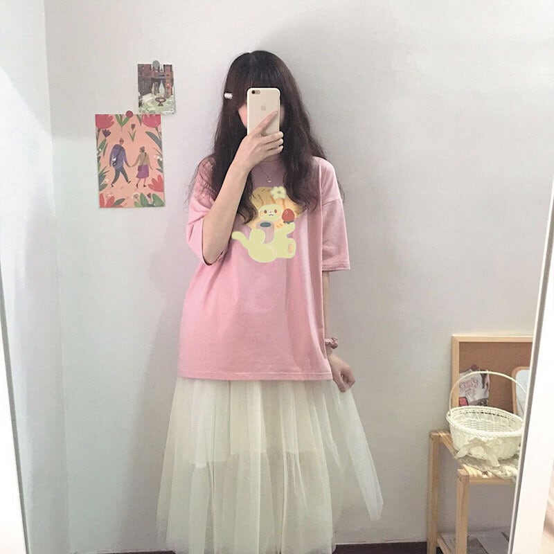 インズカレッジスタイルのかわいい漫画印刷ルーズキャンディーカラーTシャツ学生ソフトトップの半袖女性夏バージョン 大人ガーリー スウィート キュート カジュアル サマー 夏物 TM2-3 TM2-397285558702
