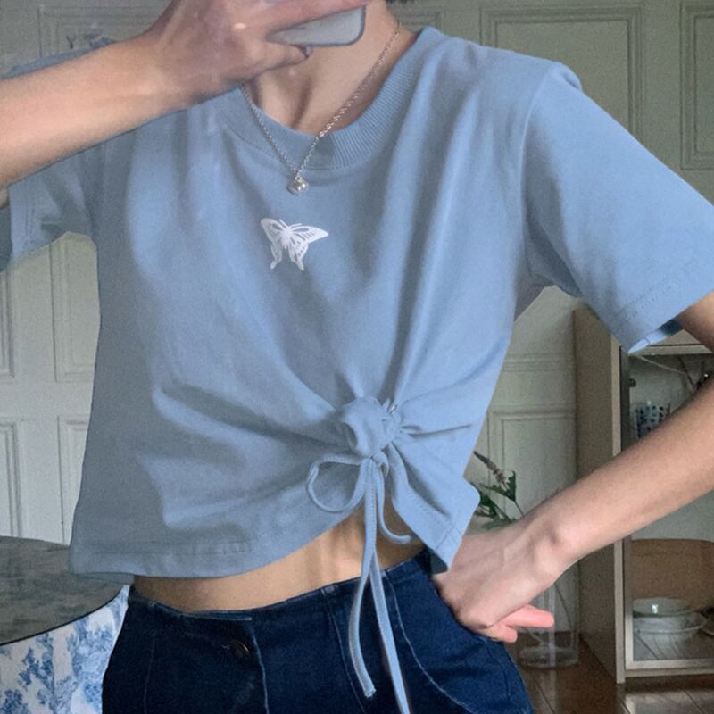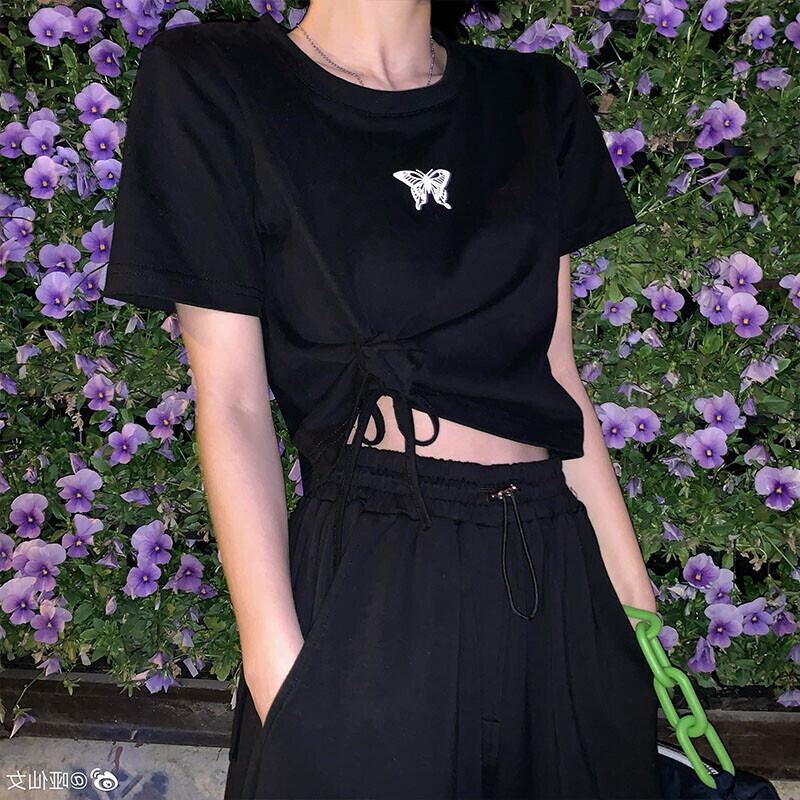 2021年夏の新作ドローストリングバタフライハイウエストアウターウェアショートTシャツレディースピュアコットン半袖デザインニッチトップ ハイウェスト サマー 夏物 TM2-3 TM2-32274334125