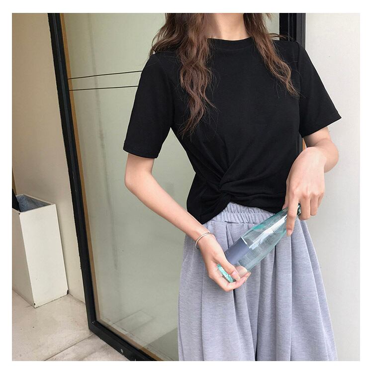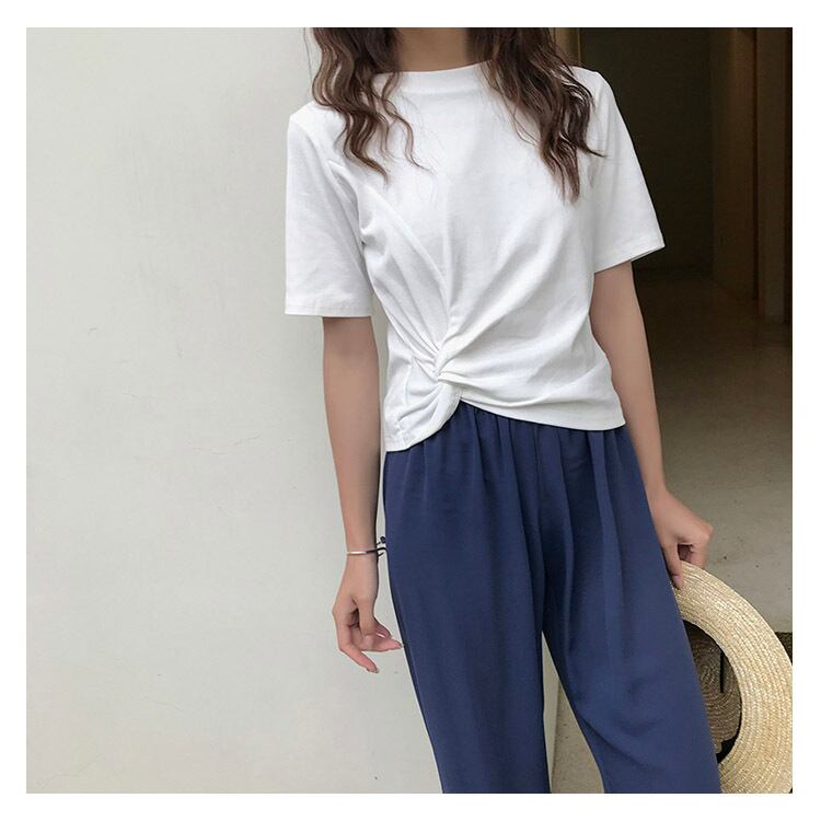 結び目のあるTシャツインタイド半袖デザインセンス女性ニッチショート女性2021年夏新しいハイウエストクロップドコットントップ ハイウェスト サマー 夏物 TM2-3 TM2-380517303428