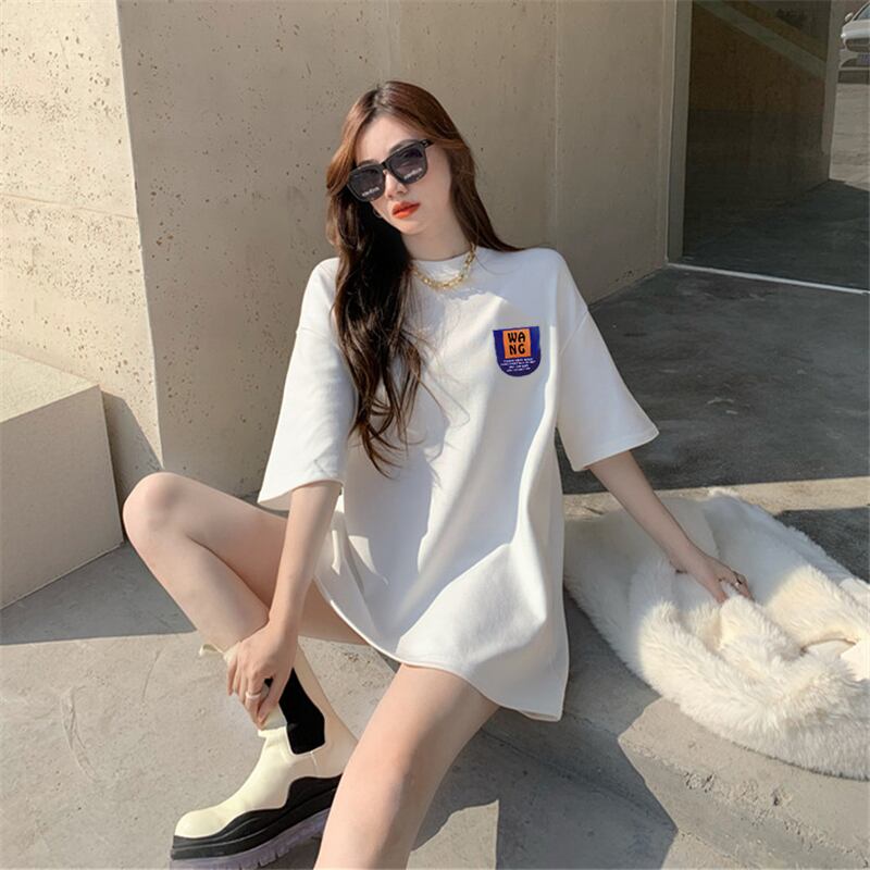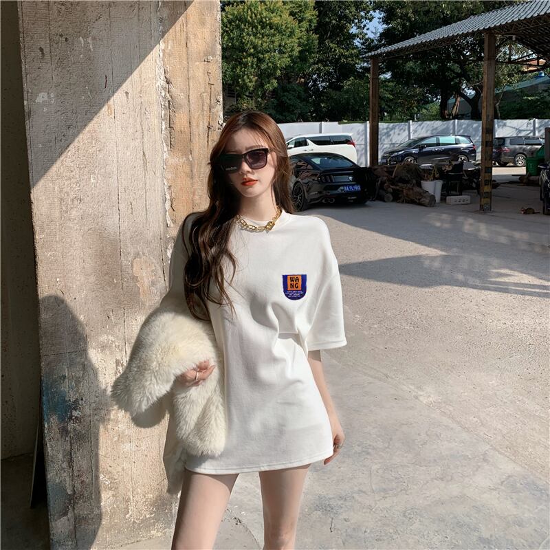 2021年夏の新作ホワイトボトミングシャツTシャツミドル丈ルーズウエスタンスタイルワイルドコットン半袖イントップ サマー 夏物 TM2-3 TM2-331806200476