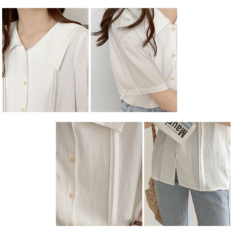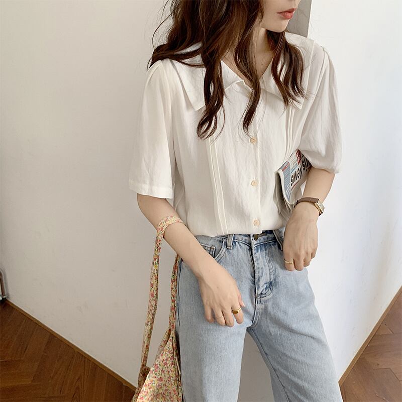 白いシャツの女性の半袖デザインのニッチシャツ2021新しいレトロな香港の味フランスのVネック気質トップ ホワイト TB2 TB258112292397