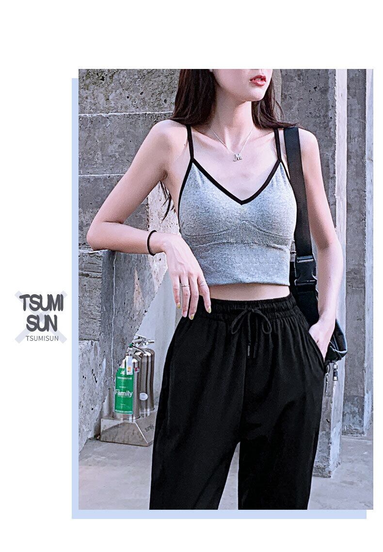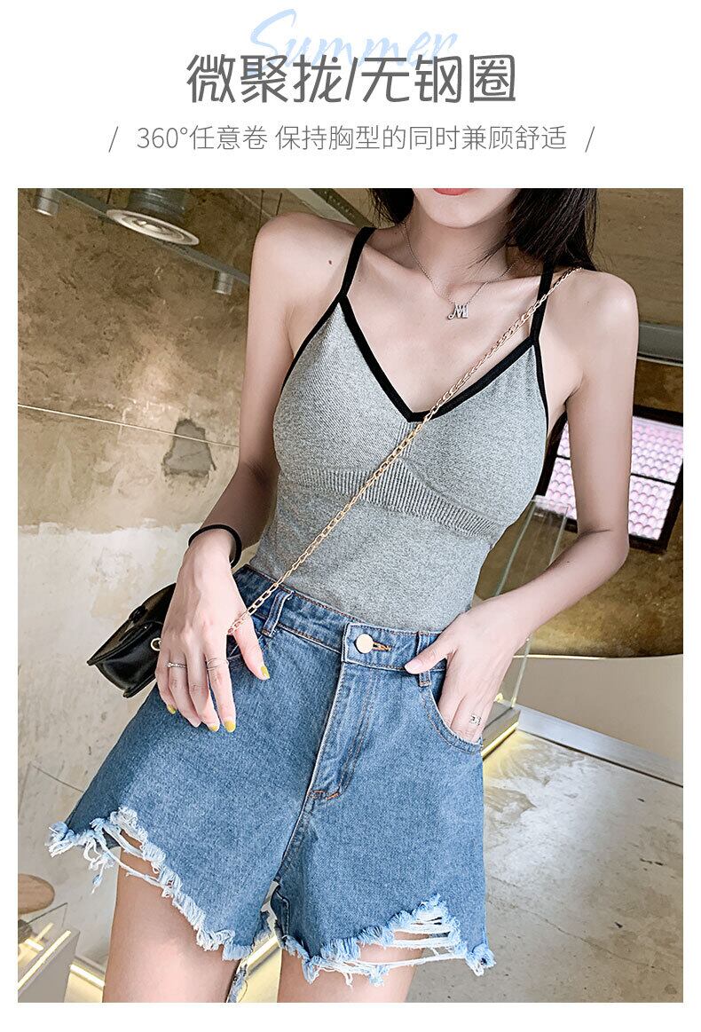 小さなサスペンダーの内側に胸パッドが付いたセクシーなボトミングシャツ、夏には黒のネットレッドのクロスオーバーベスト、 ブラック サマー 夏物 TM2-5 TM2-567179671952