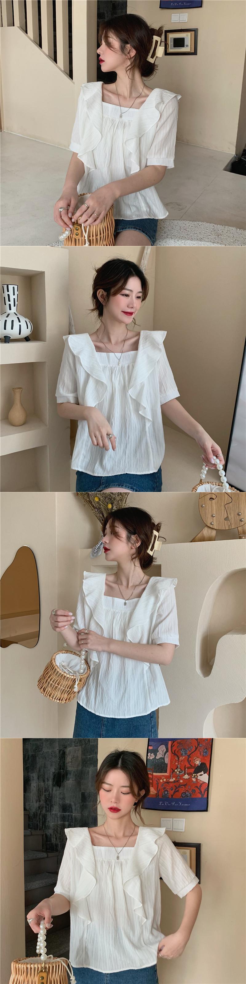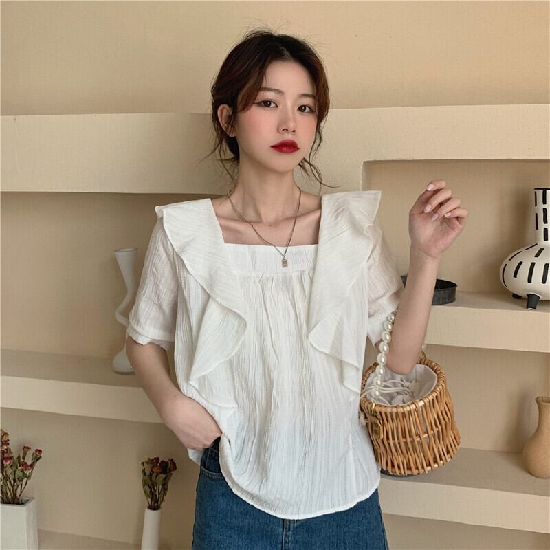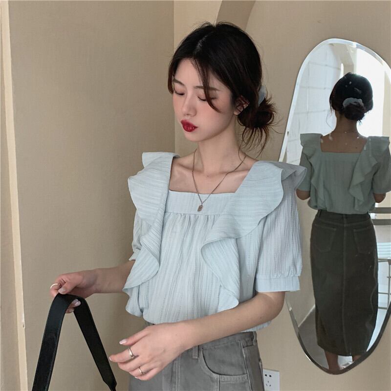 小さなルーズスクエアカラーフリルフォールド優しい風シャツ女性デザインニッチ2021夏の新しいトップ サマー 夏物 スクウェア TB2 TB281014504451