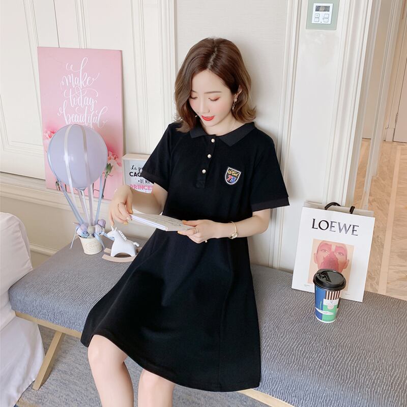 夏の新作スタイルの薄い学生ポロシャツミドル丈純綿Tシャツスカート黒の小さな半袖トップボトミングシャツ ブラック コットン サマー 夏物 ピュア TB2-16 TB2-1675307461558