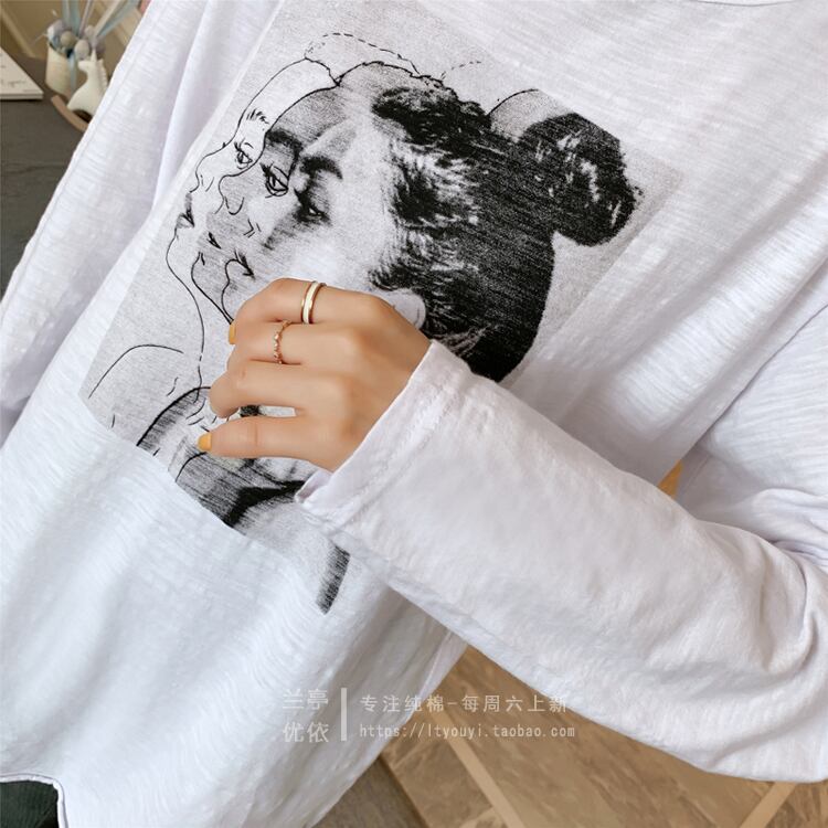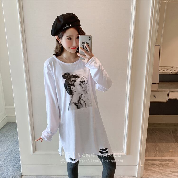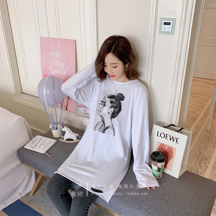 2021年春新作ミドル丈コットンTシャツ女子学生ホワイトプラスベルベット長袖シャツボトミングシャツ潮冬 ロング スプリング 春物 ウィンター 冬物 TB2-16 TB2-1664926370525