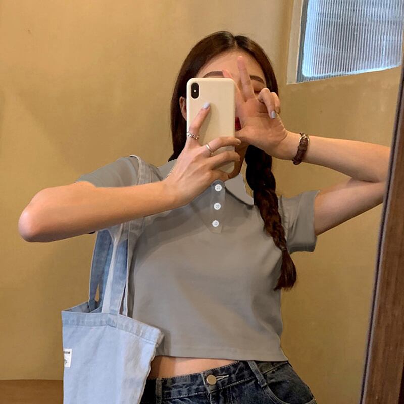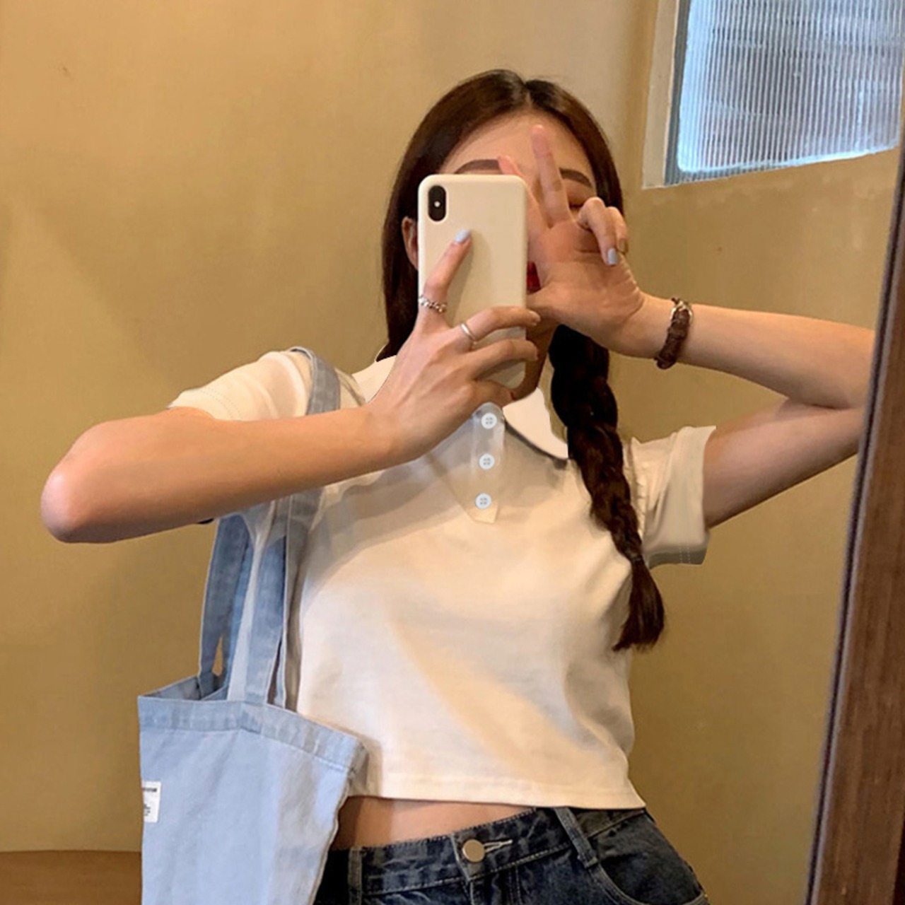 ins半袖Tシャツ女性2021年新夏ハイウエストおへそベアリングポロシャツショートスチューデントコットントップ サマー 夏物 TM2-3 TM2-368812157012