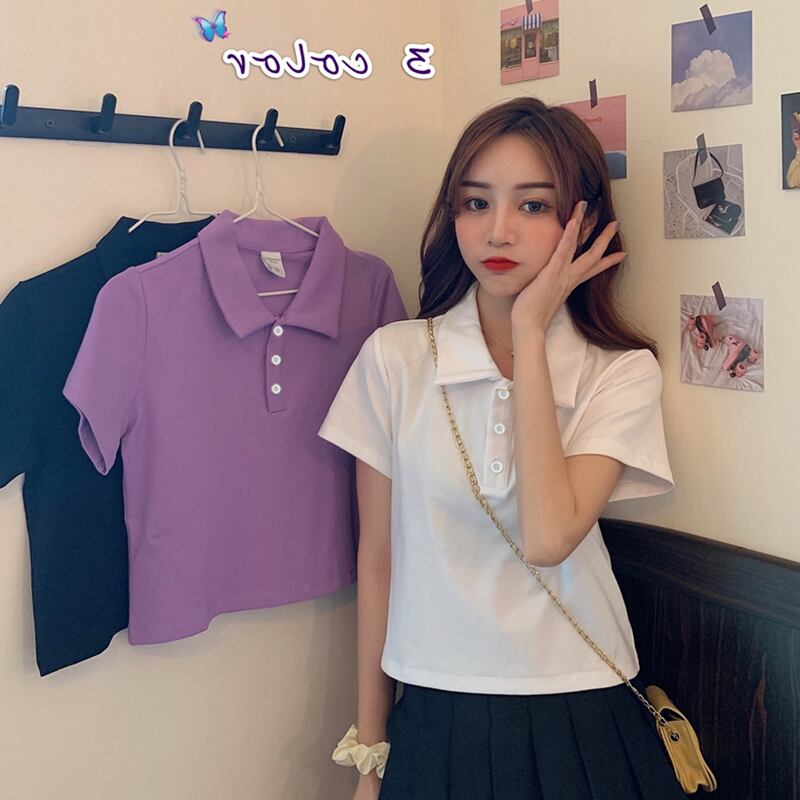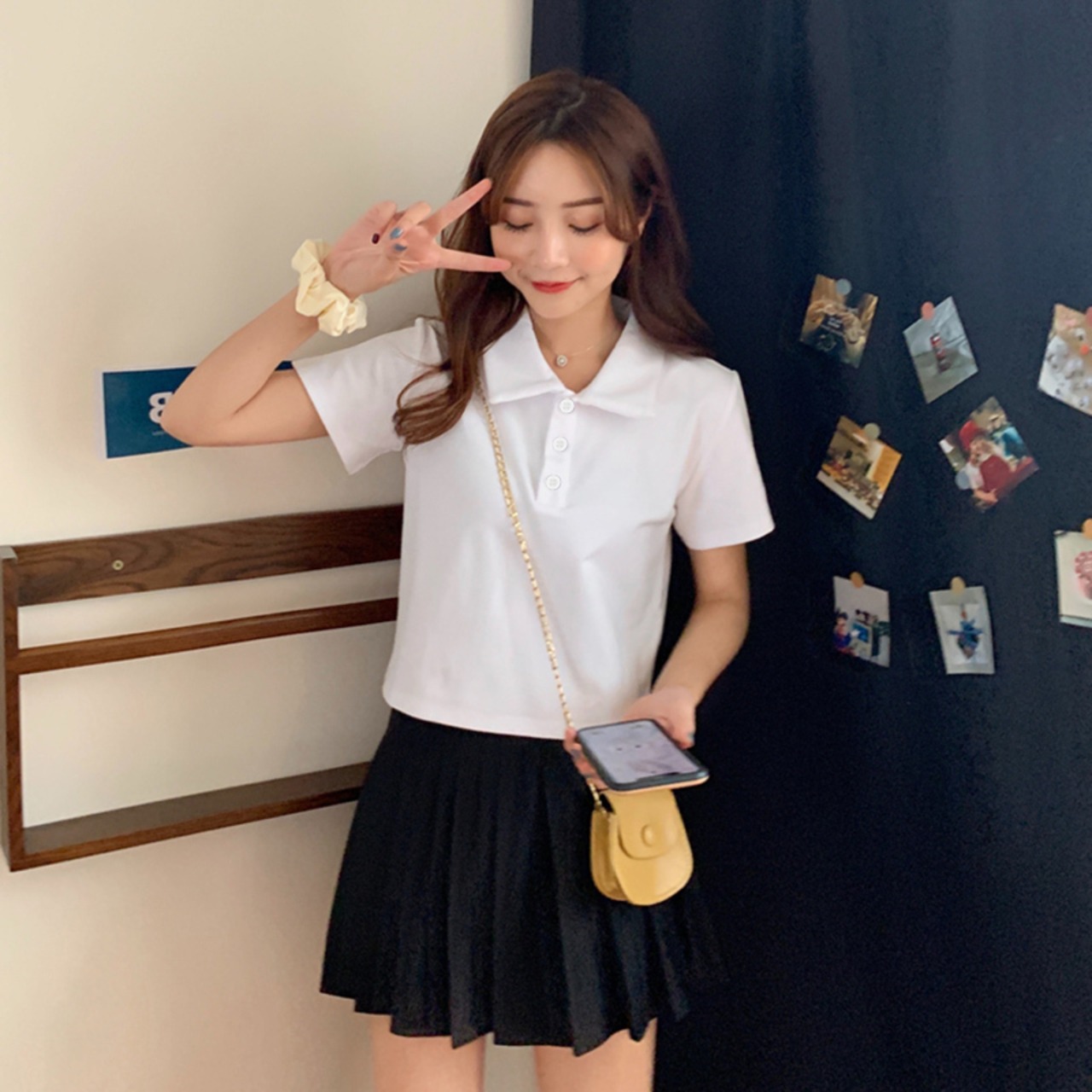 ヴィンテージ半袖Tシャツ女性夏スタイルショート無地ラペルデザインおへそコットントップのセンス サマー 夏物 ソリッドカラー ビンテージ TM2-3 TM2-33586108201