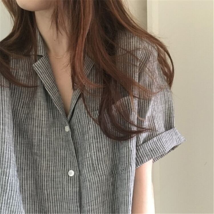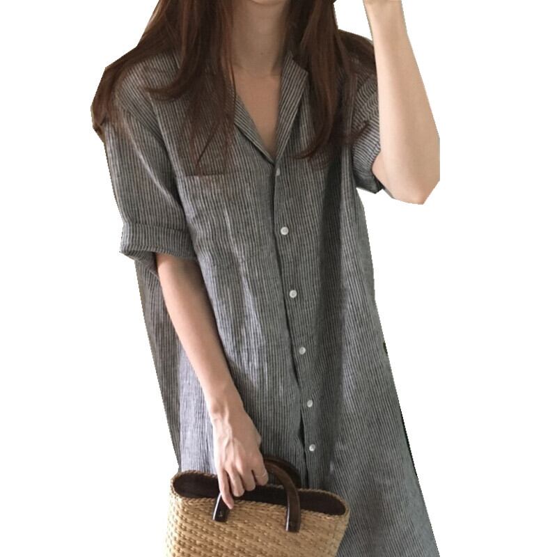 春夏ファン新スタイルBFウィンドストライプ半袖シャツレディース超ロング膝上ルーズで薄いラージコットンシャツスカート スプリング 春物 サマー 夏物 TB2-3 TB2-341135894087