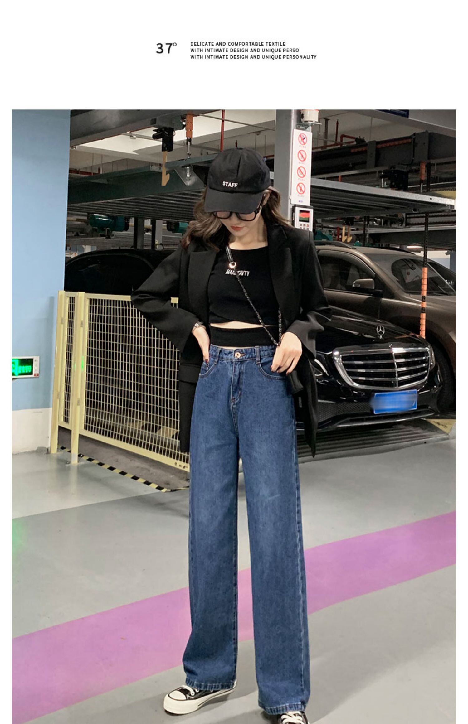 スーパーハイウエストドレープデニムワイドレッグパンツレディースサマー薄丈ルーズ&シンヒョナレトロストレートパンツ伸縮性ウエスト エラスティック 夏物 TM2-5 TM2-599138626085