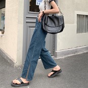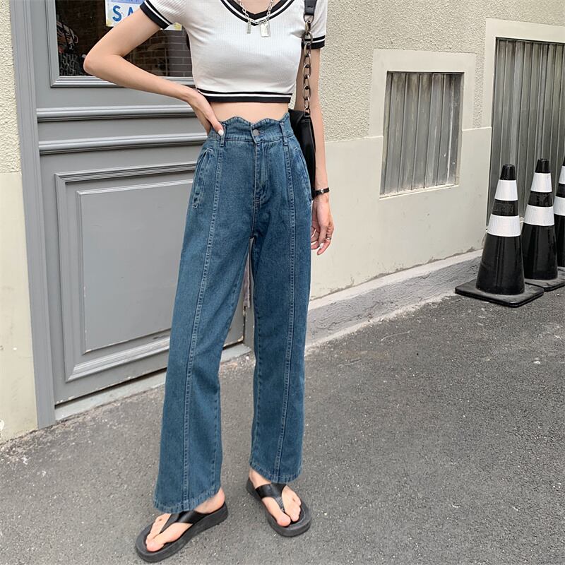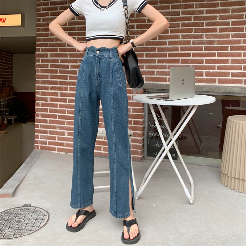 レトロダークブルースプリットジーンズレディースサマーシンセクションハイウエストシン&スモールルーズストレートワイドレッグパンツ ハイウェスト 夏物 ワイドパンツ TB2 TB246061155889