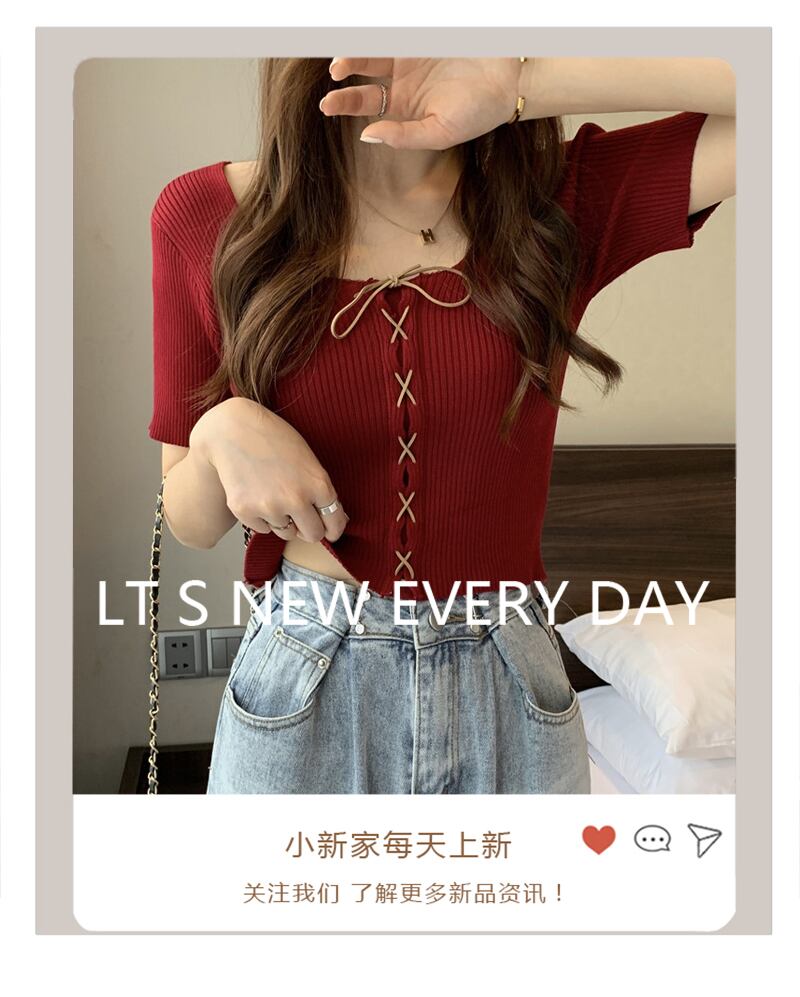 2021年夏の新デザインセンスニッチショートレッドニットセータートップボトミングシャツスリム半袖Tシャツ女性 サマー 夏物 TB2 TB220836885260