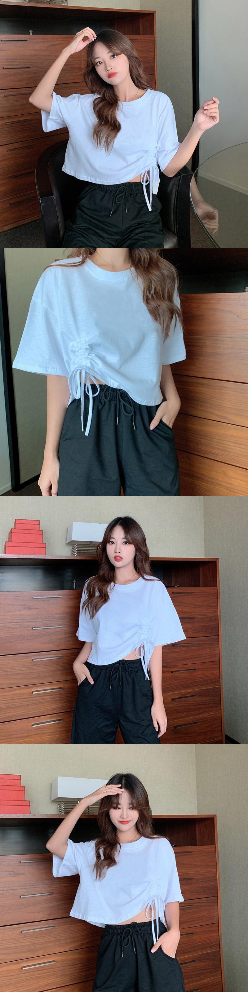 ネットレッドショート半袖Tシャツ女性インバージョンルーズドローストリングデザインセンスのニッチへそベアリングハイウエストコットントップタイド TM2-3 TM2-378509222894