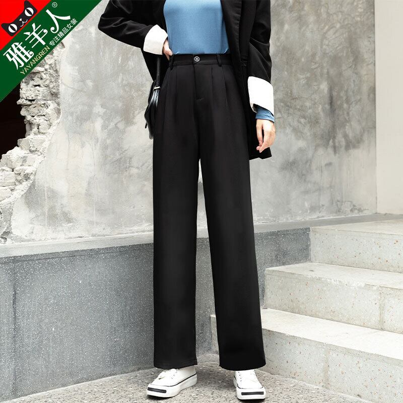ワイドレッグパンツレディースパンツプラスベルベット厚手のウールブラックストレートルーズアウターウェア伸縮性ウエストコットンシルク秋冬ロングパンツ エラスティック オータム 秋物 ウィンター 冬物 TM2-5 TM2-520415543855